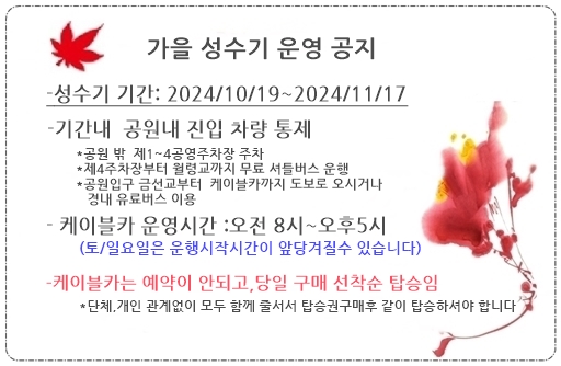 - 주차: 성수기에는 주차장이 빨리 만차되므로 셔틀버스 이용을 추천합니다.