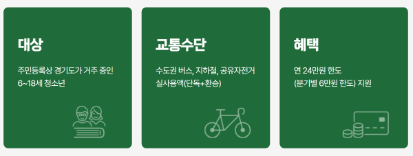 - 대상: 만 6세 ~ 만 18세 (2024년 5월 이후 수도권 대중교통 이용자)