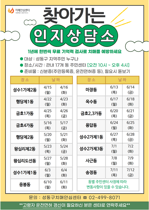 - 치매상담 콜센터: 1899-9988 (24시간 운영)