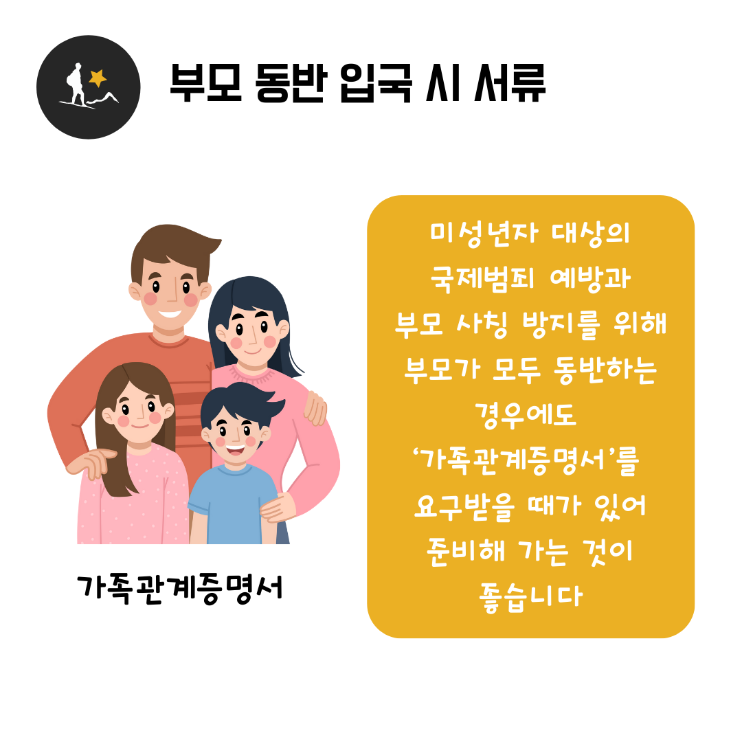 • 부모님들은 미성년자 자녀의 비행기 탑승을 위해 필요한 서류를 미리 준비해주세요.