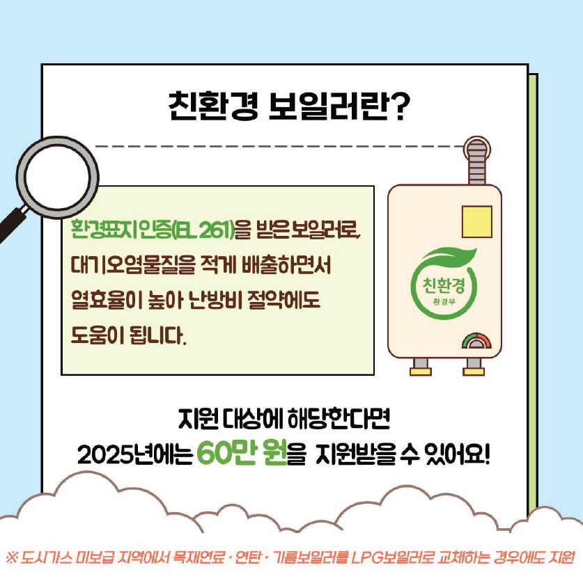 - 사후 신청 가능: 공고일 이후 보일러를 설치한 경우에도 사후 신청이 가능한 경우가 있으니 지자체에 문의하세요.