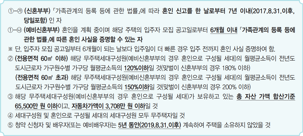 - 혼인 7년 이내 신혼부부 또는 6개월 이내 혼인예정인 예비 신혼부부