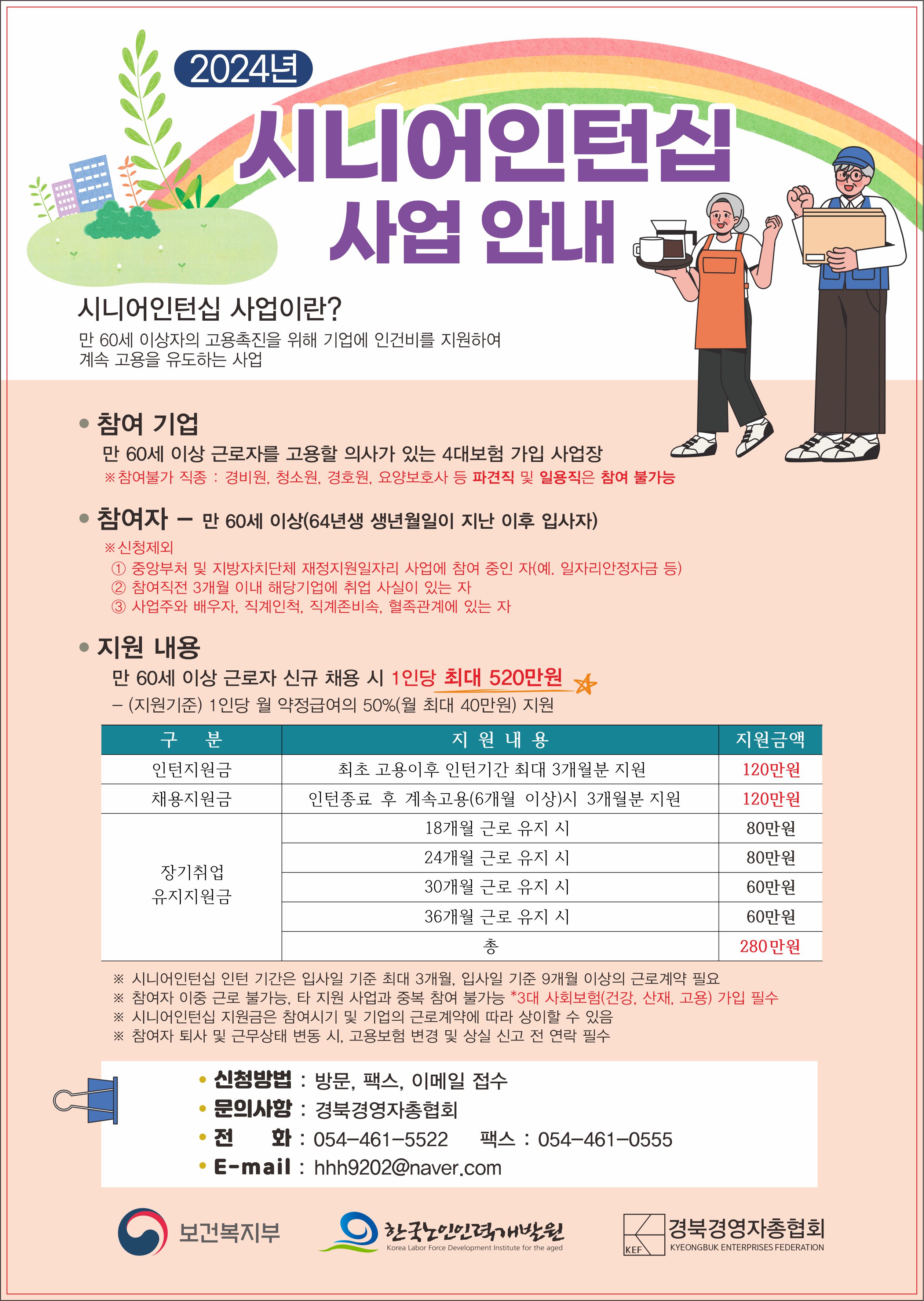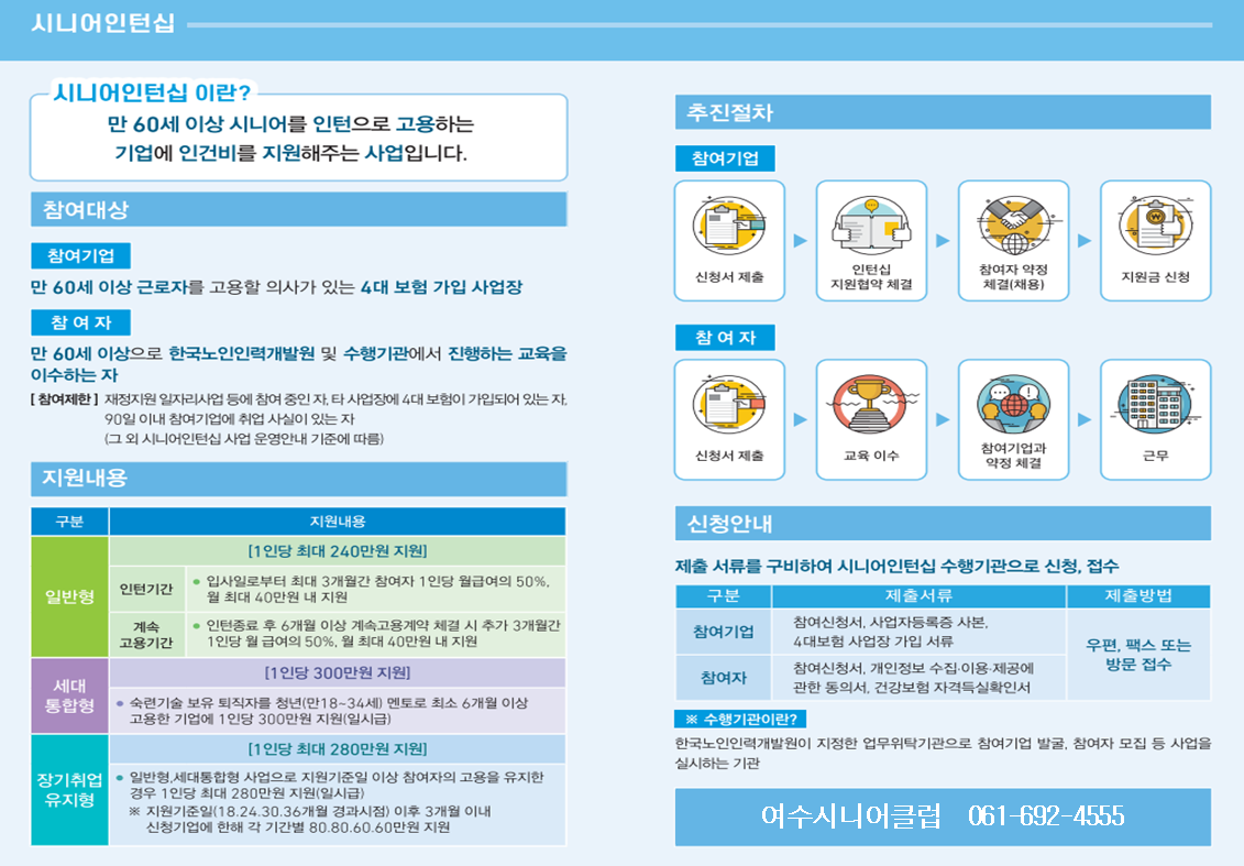 - 온라인 구직 사이트에서 '시니어 인턴십' 키워드로 검색합니다.