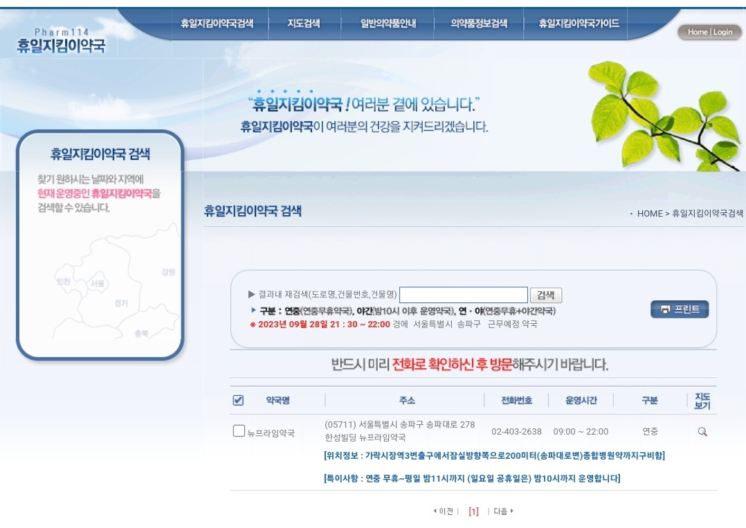 2.1 휴일지킴이약국 웹사이트 활용하기