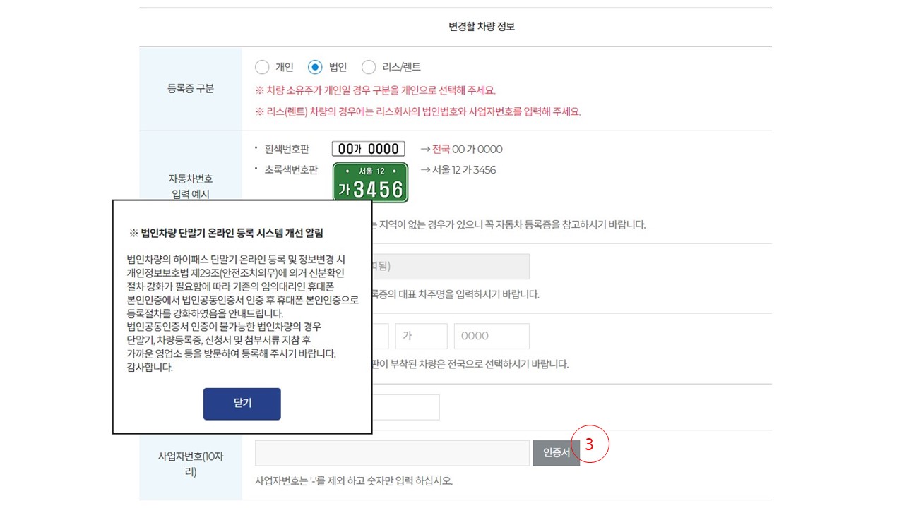 하이패스 단말기 등록 시 주의사항