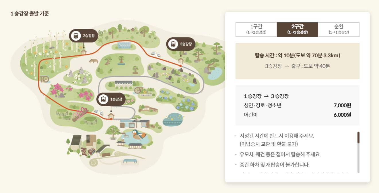 • 1승강장 - 2승강장: 성인/청소년 5,000원, 어린이 4,000원