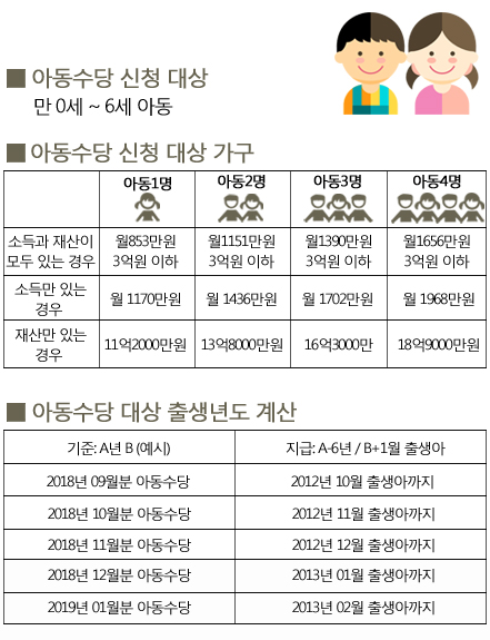A: 출생 신고와 동시에 신청 가능하며, 신청일이 속한 달부터 지급됩니다.