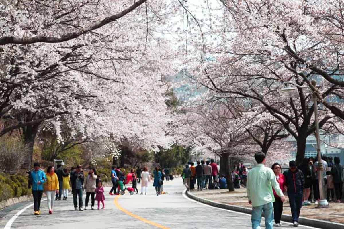 - 벚꽃 터널: 양쪽으로 늘어선 벚꽃나무