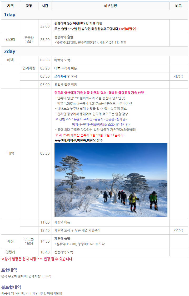 서울 출발 태백눈꽃열차 프리미엄 코스