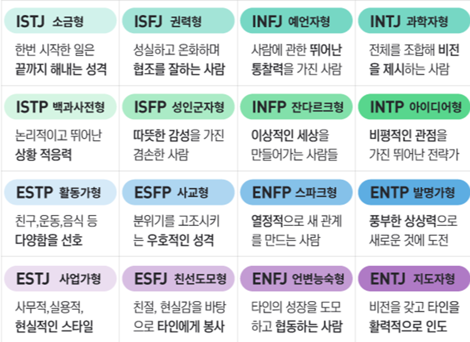4. MBTI 성격유형별 특징과 장단점