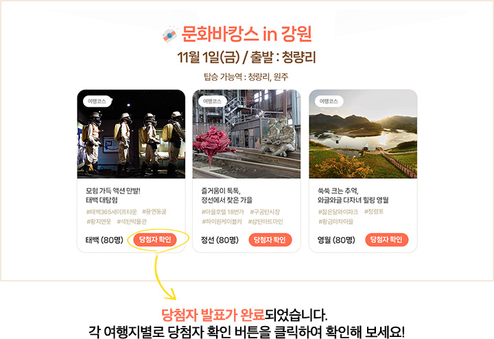 1. 강원도 문화바캉스 (11월 1일 출발)