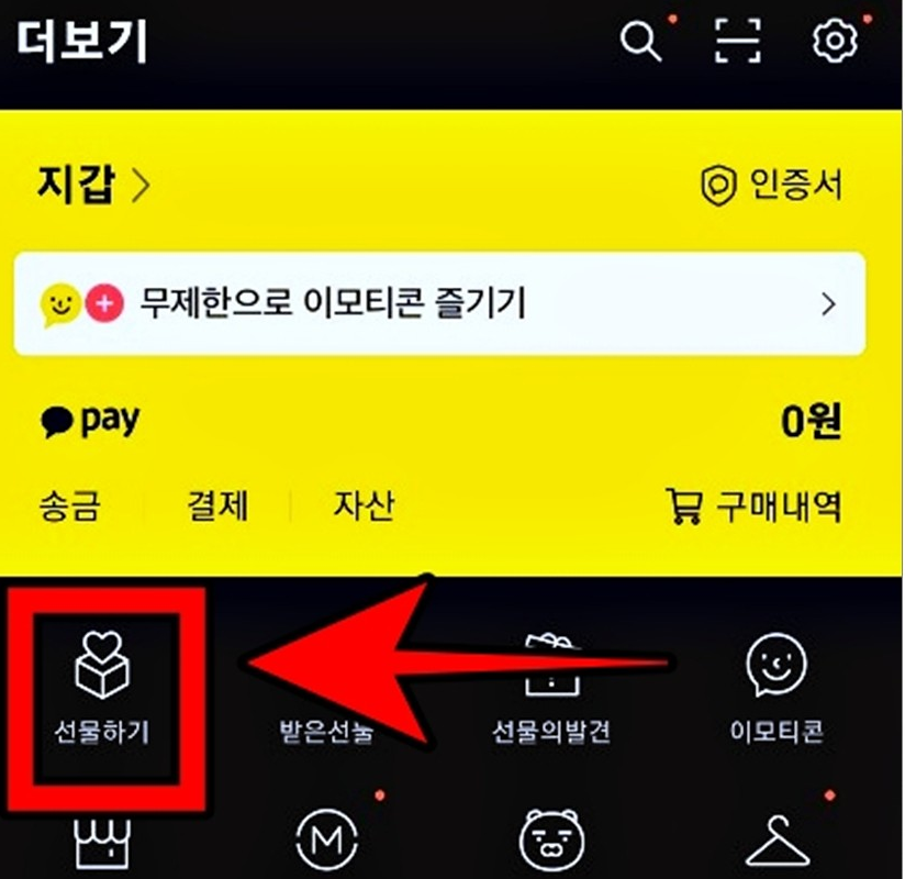 - '더보기' 탭에서 '선물하기'를 선택합니다.