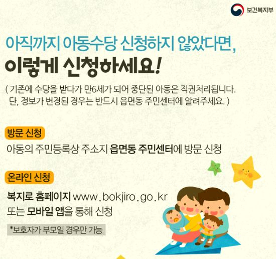 ✔️ 지원 대상: 대한민국에 거주하는 8세 미만(0~95개월) 모든 아동